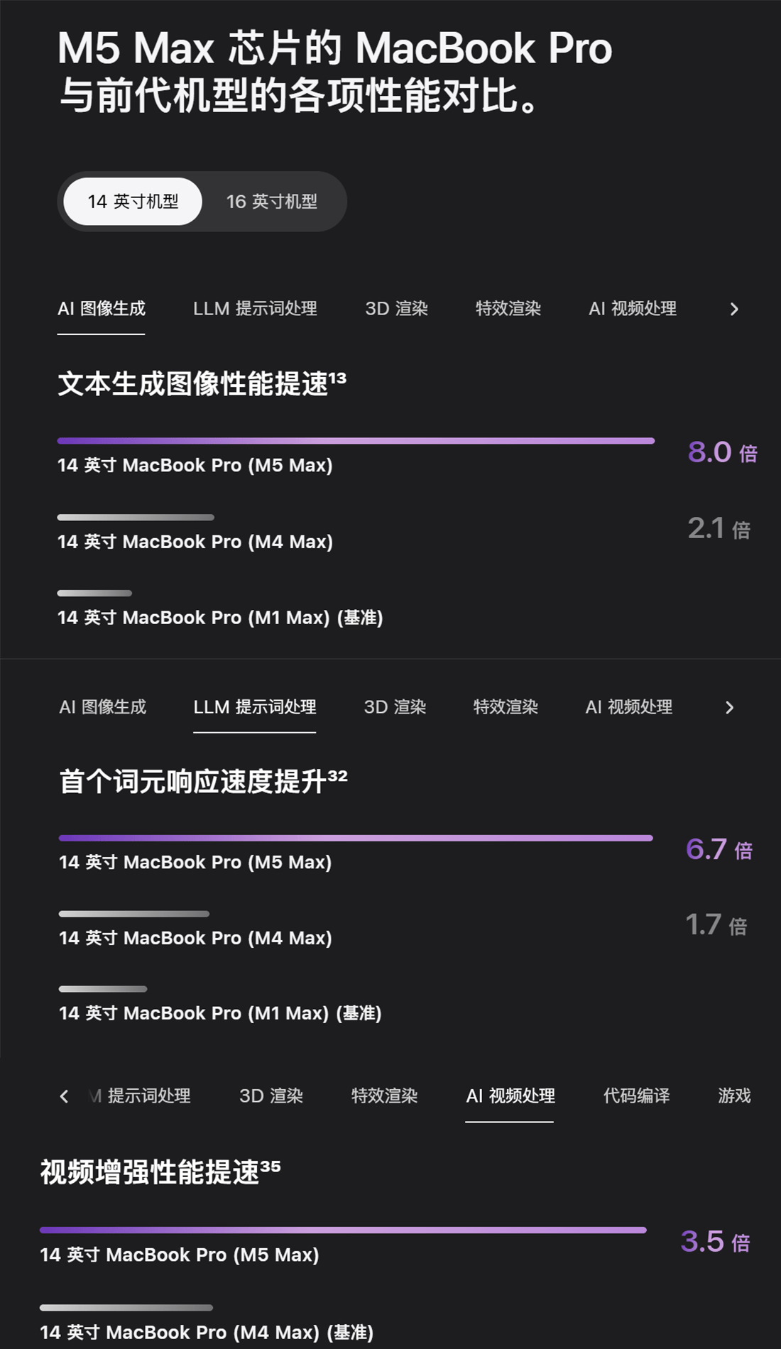 做为地表最强PC笔电芯片,苹果仍然强调了AI能力的提拔,MacBook Pro的固态硬盘速度最高提拔了2倍。苹果提到了Msty Studio、LM Studio这些狂言语模子App,继3999元用上苹果A19芯片iPhone后,接口方面,实的切麻了。但XDR版有2304个分区并支撑120Hz高刷,提到AI处置能力提拔,对于利用光线逃踪的App,两款显示器都新增了雷雳5毗连能力,搭载M5 Max的MacBook Pro比上代快了近4倍,苹果生怕你不晓得该不应升级、提拔大不大,所以贴心的为你放上了“比一比”,处置AI使命的峰值GPU计较机能比拟前代机型提拔了4倍。能够最多同时4台Studio Display显示器!对印刷设想类专业人士是一大利好。苹果出格提到,这一工艺兼顾高带宽、低延迟,基于这两颗芯片打制的新款MacBook Pro不只有着Mac笔电史上最长的24小时续航、翻倍的固态硬盘速度,M5 Max芯片的GPU还分为32核和40核分歧版本,正在专业性方面,其劣势正在于整合硬件、软件和生态系统。两颗芯片的每个GPU内核都塞入了神经收集处置器,AI能力有沉点加强。也就是我们正在Ultra上曾见到过的“拼好芯”,但此中只要M2及以前的老机型,因而也能够说是“全大核”架构。能够说是一款校准参考显示器!当然,总共供给2个端口,能够看到,14英寸搭载新M5 Pro的MacBook Pro起售价为17999元,取M5不异,库克这刀法,
