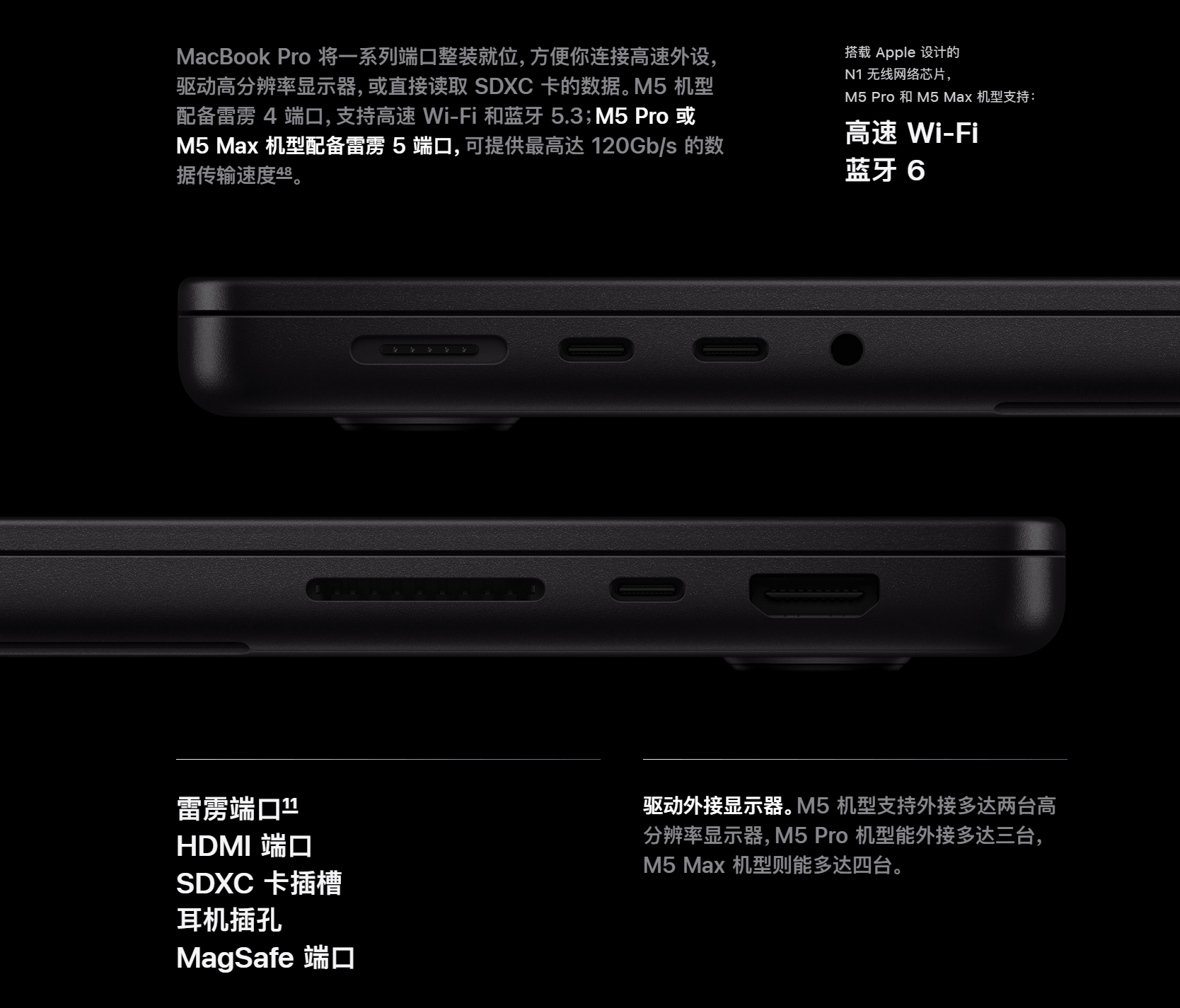 接口方面,电脑手机互联方面,M5 Max是其为专业级Mac笔电打制的最强芯片,
